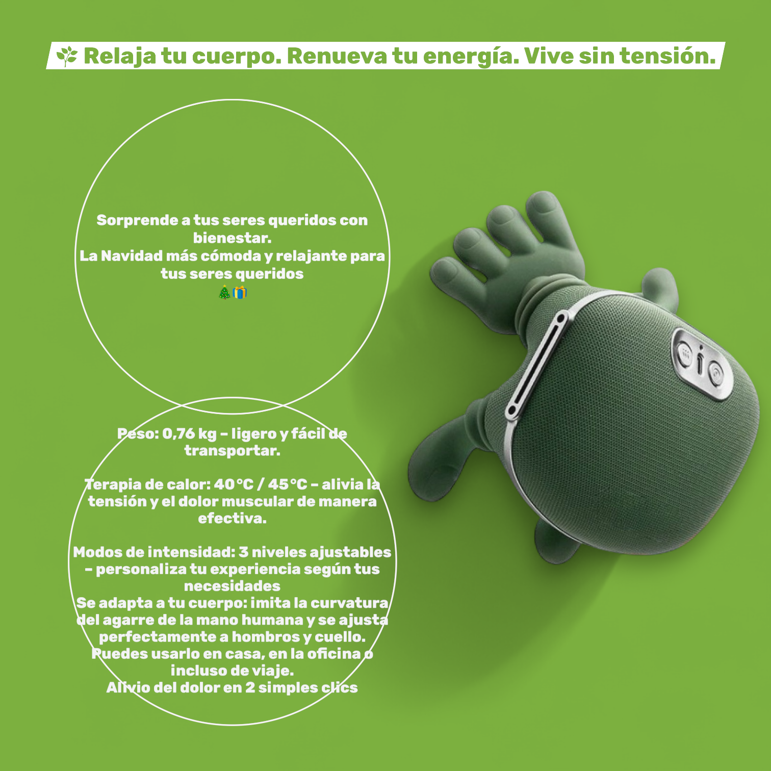 Alivia tensión y dolores musculares en cuello y hombros con solo 2 clics. Su diseño ergonómico imita la mano humana, mientras la terapia de calor y los 3 niveles de intensidad personalizan tu masaje. Ligero, portátil y perfecto para regalar bienestar a quien más quieres. 🎄🎁✨.